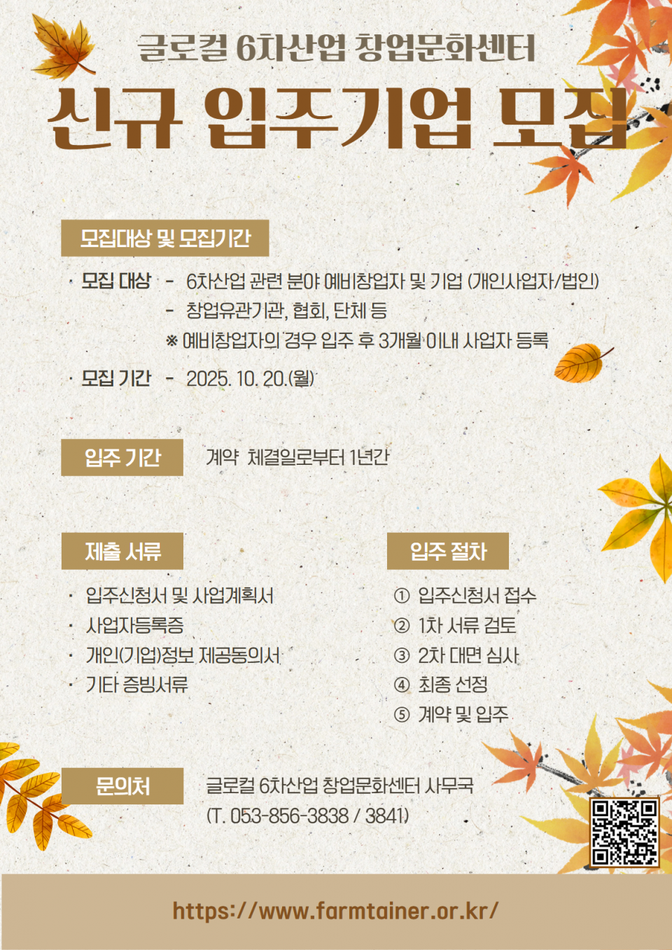 다. 문의처 : 글로컬 6차산업 창업문화센터 (Tel. 053_856_3838, 3840~3841)